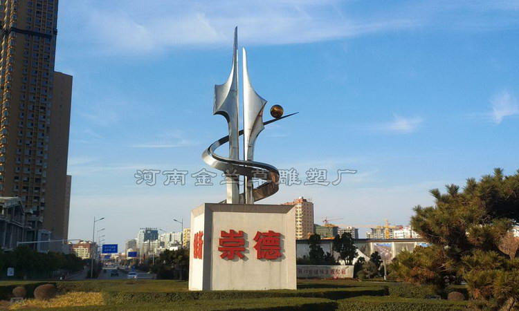 公园建设不锈钢雕塑的地方很多,比如此项目,处于公园雕塑绿化里,整个雕塑高9米,底座高2.5米,雕塑以抽象形式表现,采用304不锈钢镜面抛光处理,后期运输、安装一气呵成,雕塑